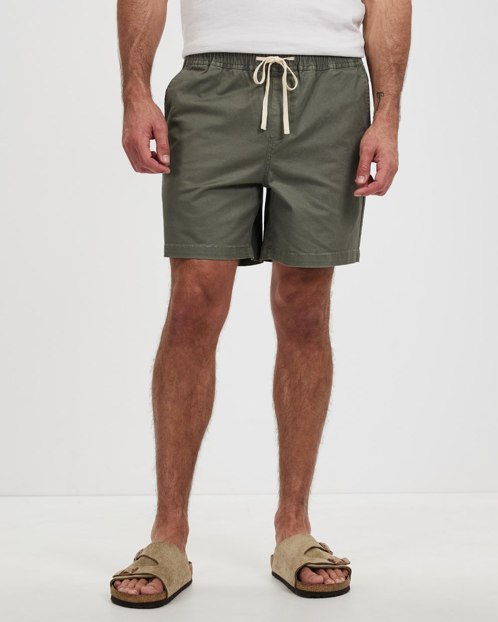 Elasticated Tie Waist Shorts (khaki) - add a nice tee or polo.