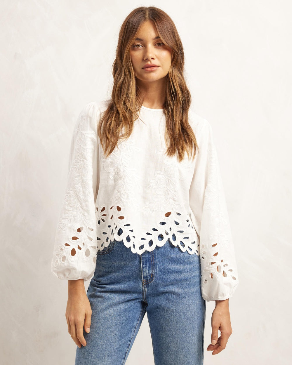 Embroidered Linen Blend Top - great option to dress up a pair of jeans and add interest to an outfit
