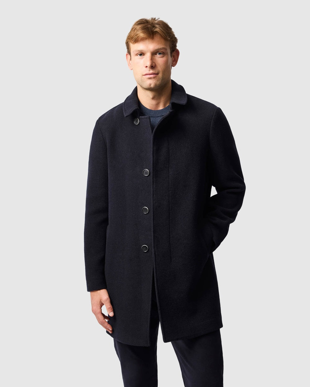 Long Sleeved Coat (midnight) - crafted in an Italian woollen-blend, with a melange yarn underside for a sophisticated marble texture. The piece that pulls all your looks together to complete your outfit.