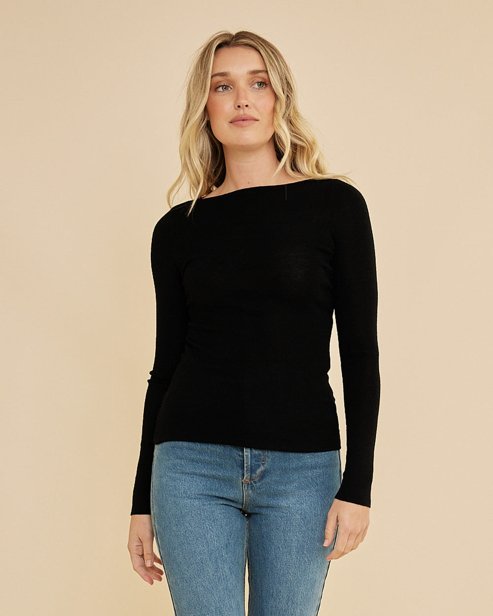 Merino Knit Boat Neck Top (black) - a super versatile piece to add value to your wardrobe. Pair under jackets/coats, add pants, denim or a skirt.
