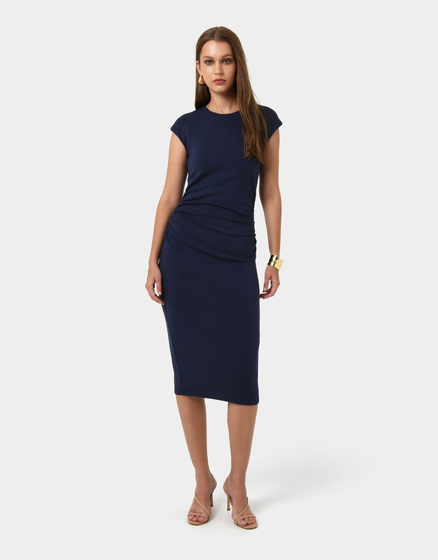 Ruched Midi dress (navy) - this will take you from day to night. Super versatile.