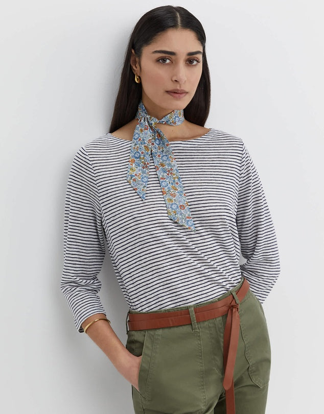 Striped Linen 3/4 Sleeve Top - Versatile option for day/night. Add a nice pair of high waisted pants or denim.