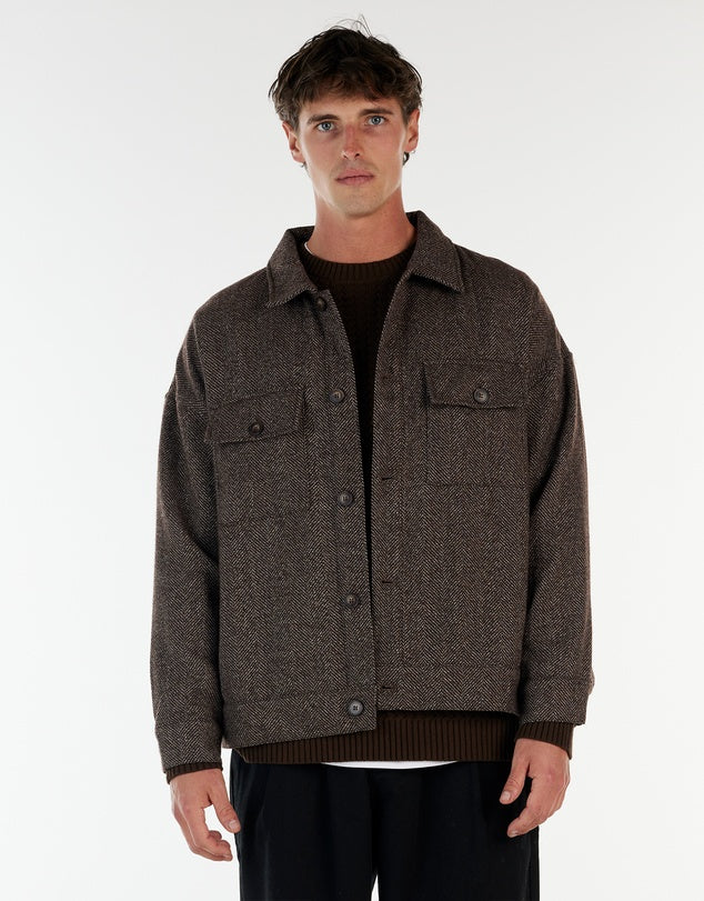 Textured herringbone jacket (brown) knitted wool and perfect for layering.