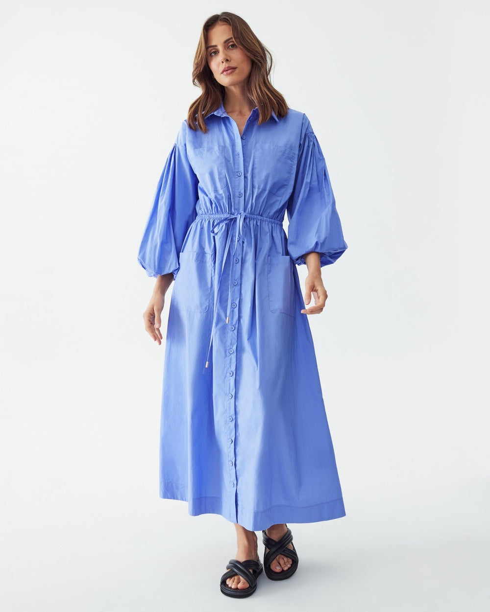 The most amazing shade of blue midi dress is a real winner. For smart casual occasions this is a dress you can simply throw on and walk out the door with. No need for adding anything other than shoes and you favourite day bag!