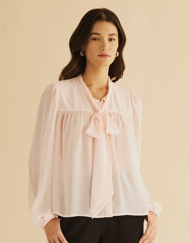 Tie front blouse in light pink - perfect for a nice lunch. Style with velvet navy pants, pull on pants or simply a pair of jeans. (it is a little see-through, so I would recommend popping a basic tank top underneath