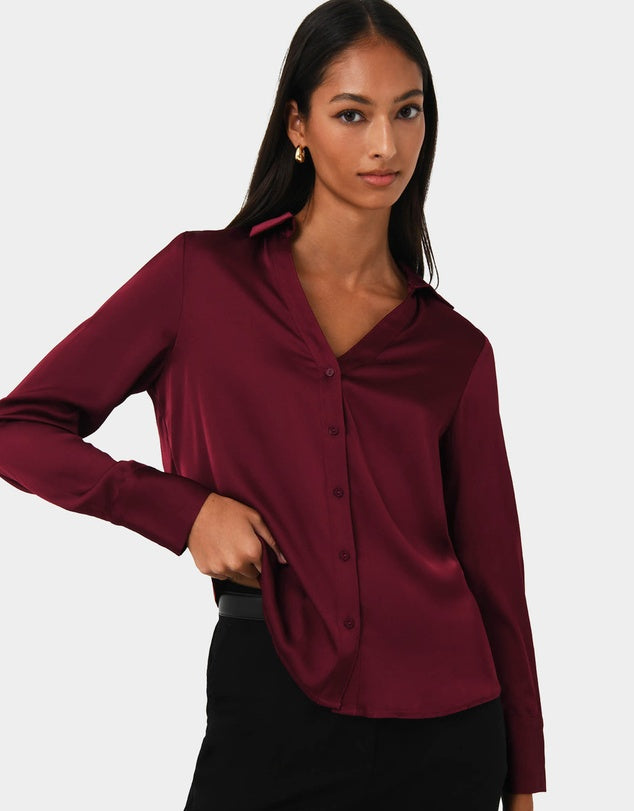V-neck Satin Blouse (red wine) - add a nice linen pant or denim jean for a more casual option.