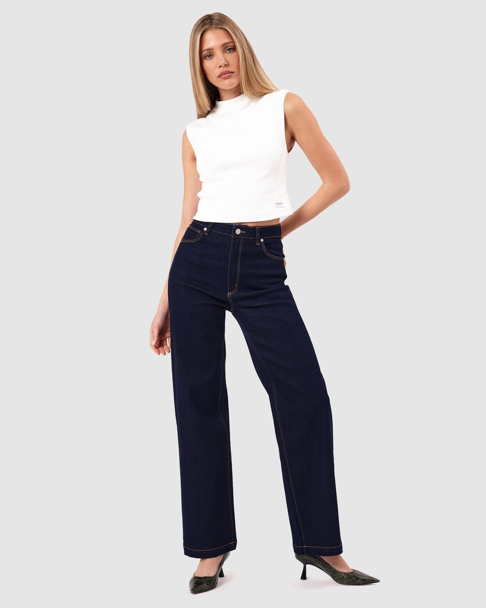 Wide leg jeans in a dark wash for the colder months - style with your new knit, brown boots and coat or dress them up for date night by pairing it with a burgundy top and a pair if heels
